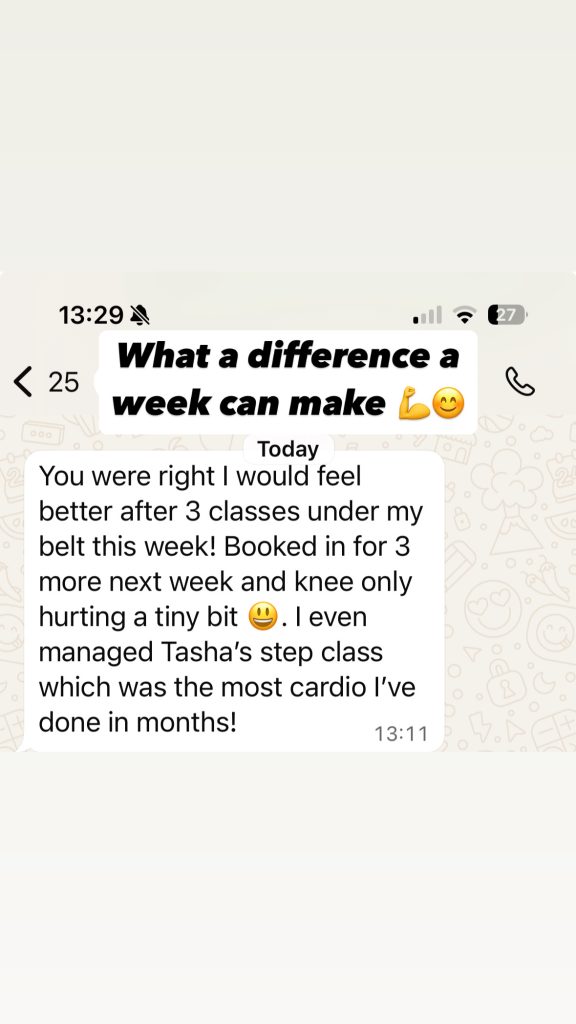 And another told me she managed 3 sessions this week, her knees only hurt a tiny bit, and she’s buzzing with that win.